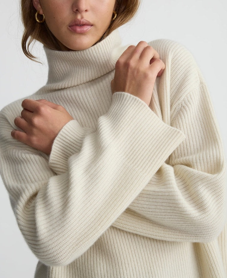 The Oversized Turtleneck is the epitome of luxurious comfort. Made from super soft 100% cashmere, this oversized ribbed knit with drop sleeves is an essential in modern layering.