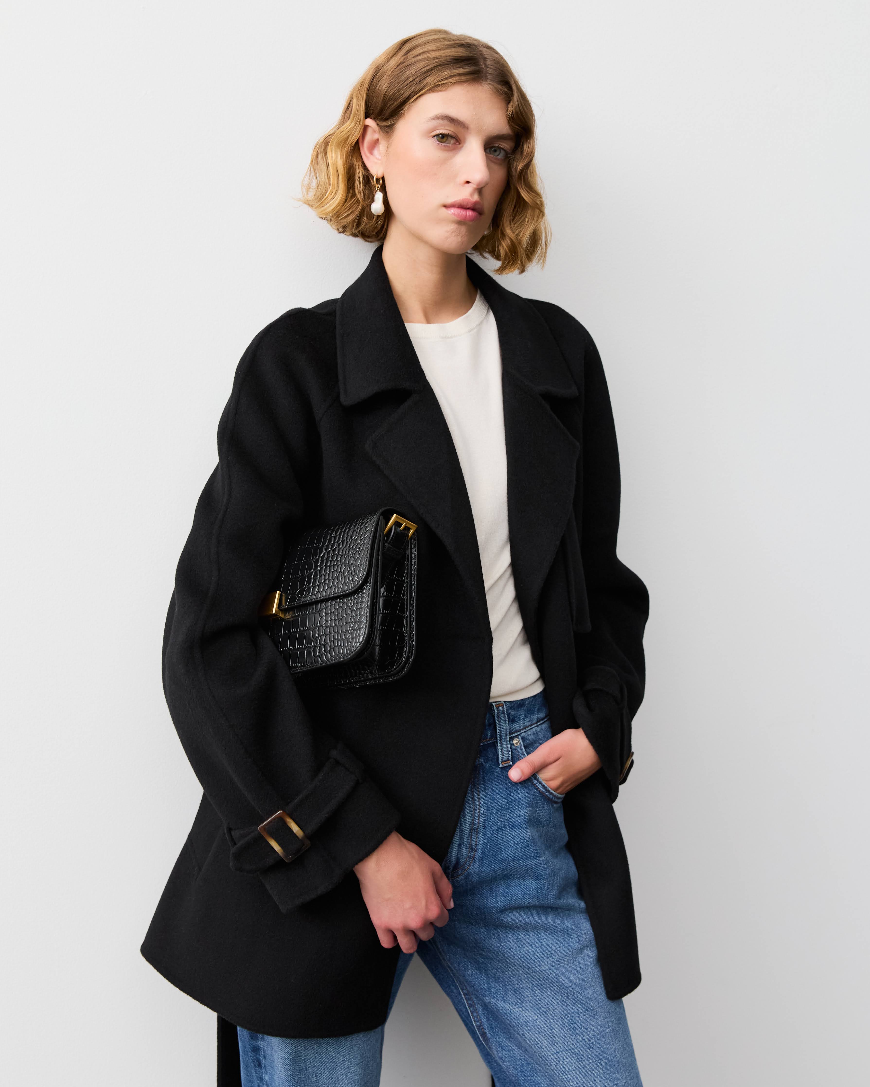 THE DOUBLE FACED TRENCH JACKET - BLACK